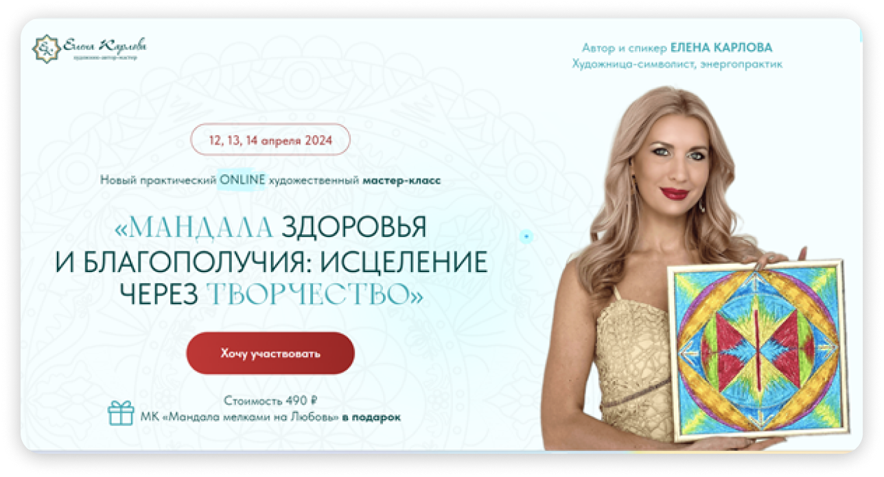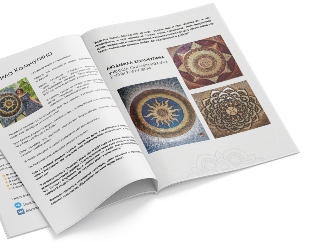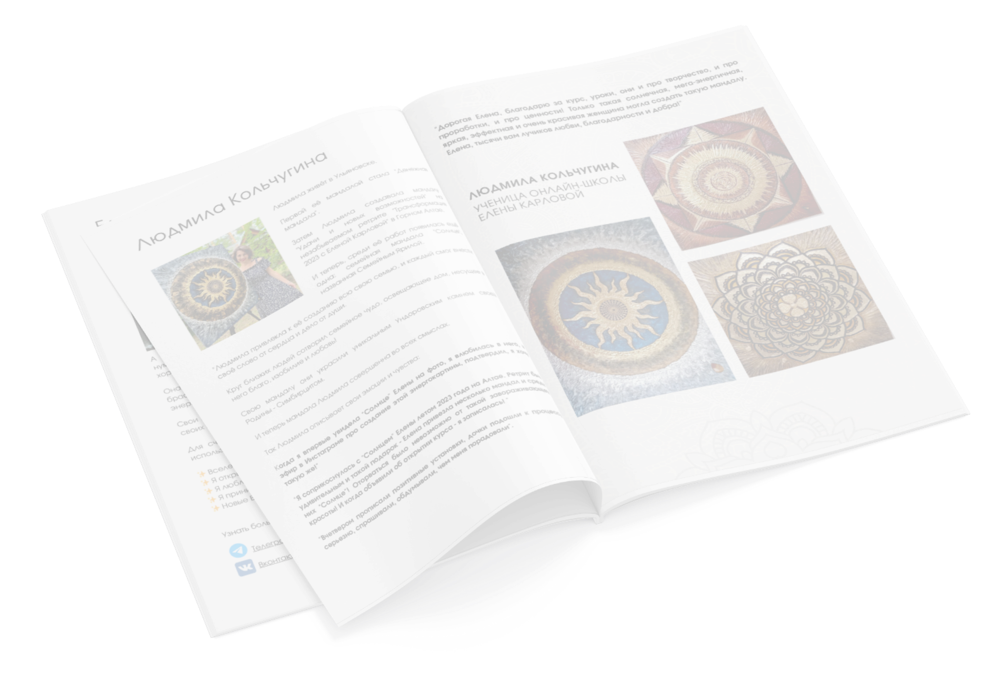За время своего существования запустила и успешно провела девять курсов и несколько масштабных онлайн мастер-классов по созданию мандал по авторской методике Елены
